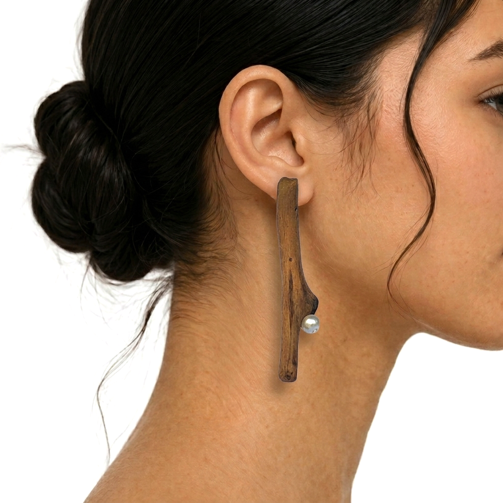 Kõrvarõngad MEREVAIKUS 2 – ajupuit, magevee pärl