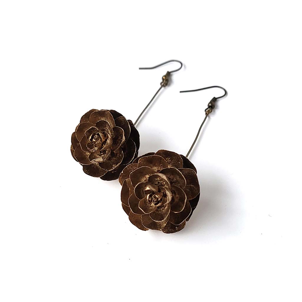 Kõrvarõngaste sari KÄBI on valmistatud Eestimaal kasvavate okaspuude käbidest, mis on sirgunud metsade vaikuses ja maa väes. Käsitsi valitud ja viimistletud käbid toovad Sinu argipäeva killukese põhjamaist metsa – toorest, ehedat ja ajatut ilu. Kõrvarõngastega on kaasas kinkekarp.